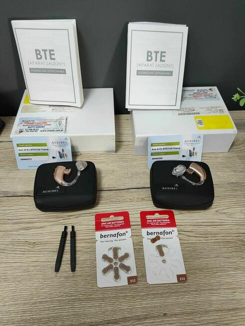 Sprawne. Cena za oba aparaty, na prawe i lewe ucho. ( ucho prawe czerwone, ucho lewe niebieskie). Urządzenia te służą ...